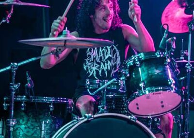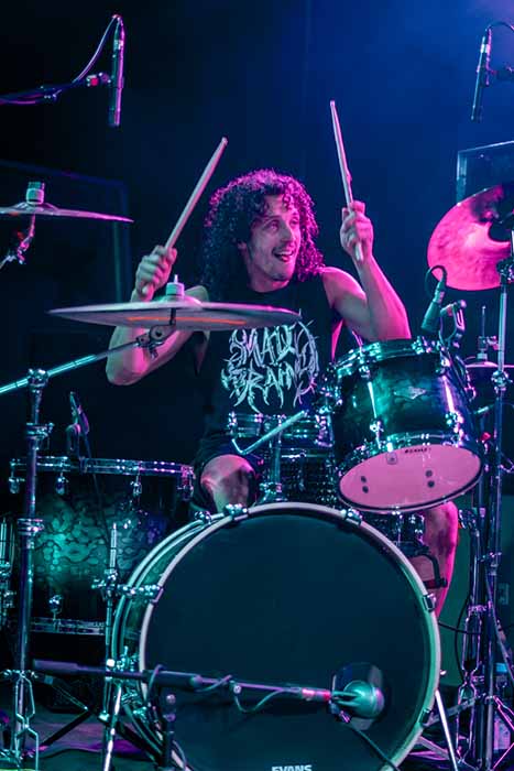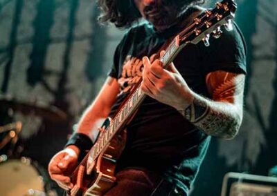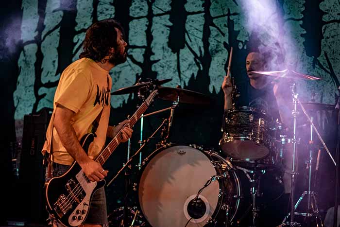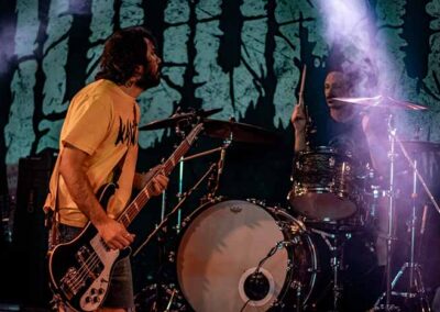 Kurze Zeit später gingen die Lichter wieder aus. Zunächst tönte „War Pigs“ von Black Sabbath aus den Lautsprechern, dann eröffneten 1000mods ihr Set mit „Overthrown“. Ein starker Start, nach dem die Band mit „Electric Carve“ direkt noch einen Zahn zulegte. Das Publikum war schon nach zwei Songs voll da. Mit wenigen Worten, gelegentlichen Zeichen (wie z.B. dem Erheben einer Faust oder einem Lächeln) – aber dafür mit umso mehr starken Sounds – führten die Musiker die Menge durch den Abend.