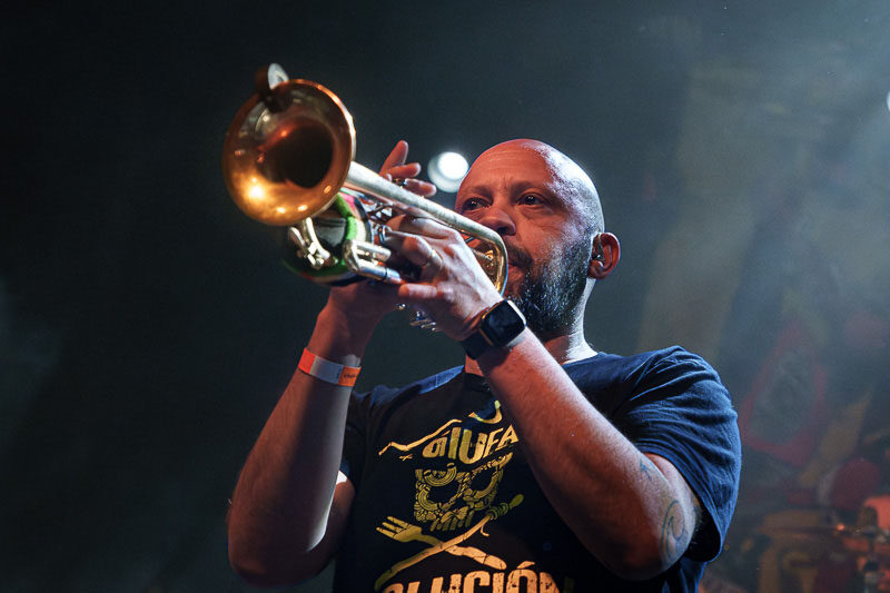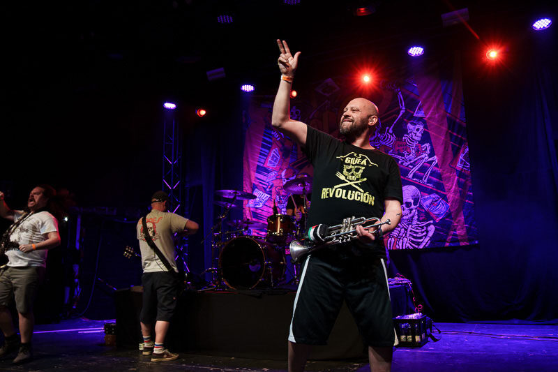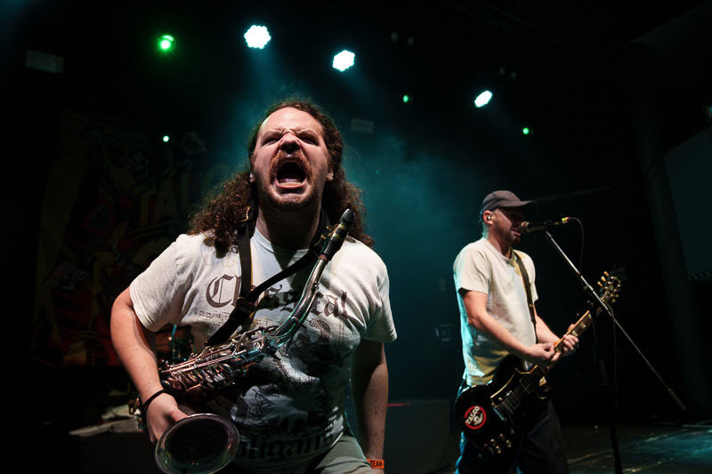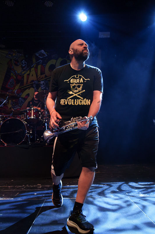 Talcos einmaliger, bläserlastiger Ska-Punk verbindet mühelos ernste Themen mit purer Lebensfreude und schafft damit vielleicht die beste Gute-Laune-Musik, die der Punk-Rock zu bieten hat. Auch im Löwensaal wurde schnell klar, warum die Italiener seit mittlerweile zwanzig Jahren eine so treue Fanbase hinter sich versammeln.