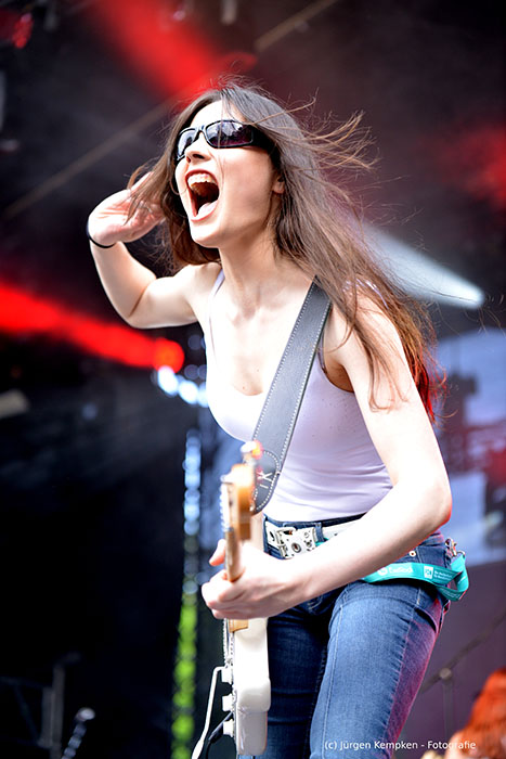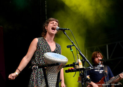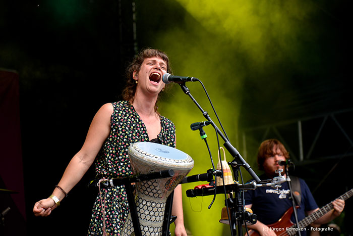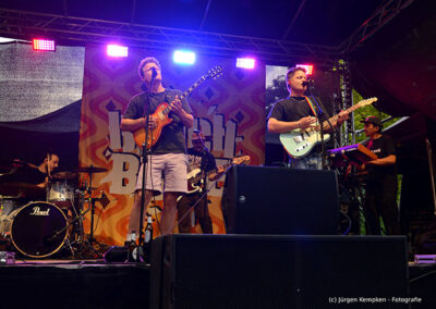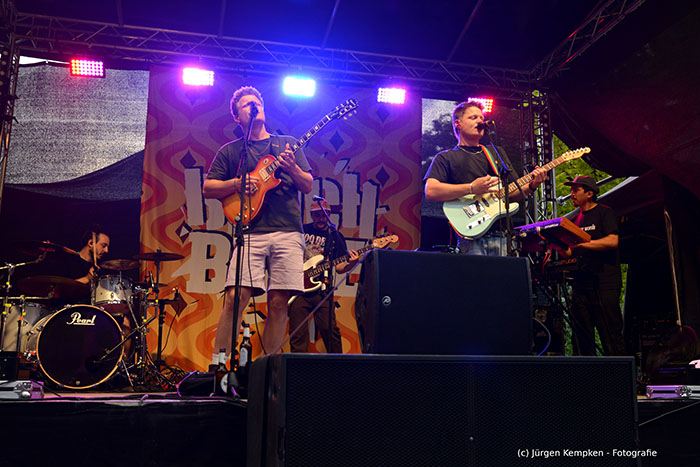 An einem Parkteich gelegen die Seebühne. Diese etwas größere Bühne bot ersten Bands die Möglichkeit zu präsentieren und so ist es bei den vorhergehenden Festivals der Fall gewesen, sich für zukünftige Shows auf der Hauptbühne zu bewerben. Auch hier trafen unterschiedliche Genres aufeinander. Am ersten Tag eröffneten THE TESTOSTERONS, eine Punk/Rock-Newcomer-Band aus Wesel und Umgebung diese Stage mit Songs über die Testosterongesteuerten wirren des Teenager-Lebens. STINA HOLMQUIST mit ihrer Band brachte das Publikum mit ihrer Indie-Popmusik zurück in den lauen Sommerabend, der für einen träumerischen Blick auf den Teich sehr passend ist. Der Samstag startet auf dieser Bühne mit den FUD`IES, einer achtköpfigen Combo von Menschen mit und ohne Beeinträchtigen. Mit musikalischen Klassikern und erkennbar sehr viel Spass beim Auftritt ergab sich sofort eine stimmungsvolle und emotionale Atmosphäre. Ebenso mitreißend der Ska und Reggea Sound der NERD ACADEMY, die nach einigen Auszeiten wieder auf die Bühnenbretter zurückgekehrt sind. Abschließend gingen noch BRUCHBUDE mit direktem und authentischen Indie-Rock auf der Seebühne steil.