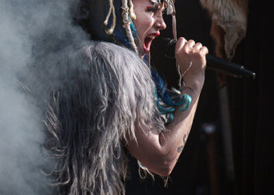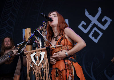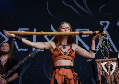 Zurück auf der Burg ging es weiter mit Deloraine. Für viele Besucher waren die Tschechen ein Must-see. Musikalisch und optisch erinnert die Band stark an Heilung. Ihre Show wirkte eher wie ein schamanisches Ritual als ein normales Konzert. Schade nur, dass sie einen Slot um 16 Uhr bei 33 °C und praller Sonne erwischt hatten. Als Late-Night-Act wäre die Truppe vermutlich noch atmosphärischer und spannender gewesen. Verschenktes Potenzial, aber trotzdem ein großartiger Act.