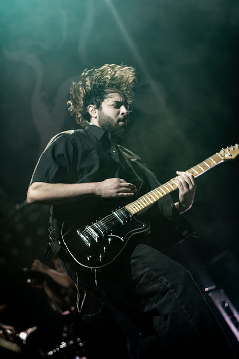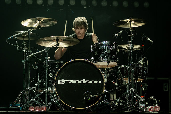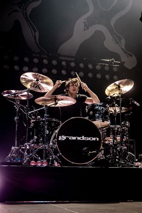 Kurz nach 21:00 Uhr gingen die Lichter aus, und aus den Lautsprechern tönte „Killing in the Name“ von Rage Against the Machine. Ein passenderes Intro für das, was folgen sollte, kann ich mir kaum vorstellen. Auch wenn Grandsons Musik nicht ganz so hart ist (oder zumindest nicht immer), spürt man doch eine gewisse – teils deutliche – Verbundenheit zu Zack de la Rochas Band aus den 90ern.