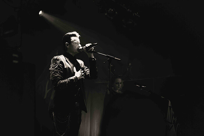 Dann betraten Lacrimosa die Bühne. Die Lichtshow mit gezielten Spots und dichtem Nebel tauchte den Hirsch in mystische Atmosphäre, während die charakteristischen Lacrimosa-Banner das Bühnenbild zierten. Frontmann Tilo Wolff zeigte sich sichtlich bewegt und betonte, wie glücklich die Band sei, dass so viele Menschen sich die Zeit genommen haben – an einem Sonntag – um das Konzert zu besuchen.