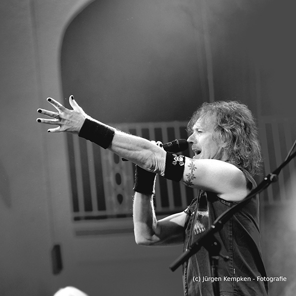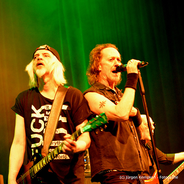 Als special Guests traten zunächst VIOLETTE SOUNDS aus der Gegend um Aachen, mit dem Sänger Loten Manling auf die Bühne und versuchen mit ihrem, wie der Kopf der Band Karl Henneberg es nennt, „Atmospheric Art-Rock“ in die tibetanische Welt zu entführen. Dies gelang jedoch nur ebenso bedingt, wie die luxemburgische Band MY OWN GHOST das Publikum mit ihrem Hard Rock in den Bann ziehen konnte. Die gut zur Hälfte gefüllte Halle schien fixiert auf die Show von NAZARETH, die dann gegen 21 Uhr für rund 90 Minuten auf der Bühne erschienen. Und sie wurden nicht enttäuscht. Mit einem guten Mix aus neuen und alten Songs brachten sie die Halle in Bewegung. Insbesondere bei den Songs Love Hurts, Dream On und This Flight Tonight zeigte sich das Publikum in Teilen sehr textsicher.