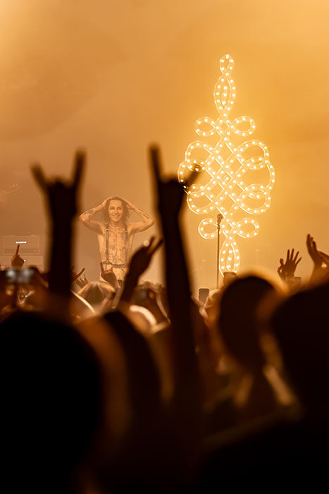 Als es so weit war und Palaye Royale vor das Publikum traten, war die Freude im Publikum deutlich spürbar. Und das nicht ohne Grund – von der ersten Sekunde an gaben die drei Brüder Vollgas und boten eine kompromisslose intensive Live-Show. Während selbstverständlich die Songs ihres aktuellen Live-Albums Death or Glory im Mittelpunkt standen, durften aber auch ältere Hits wie „Mr. Doctor Man“ oder „Little Bastards“ nicht fehlen.