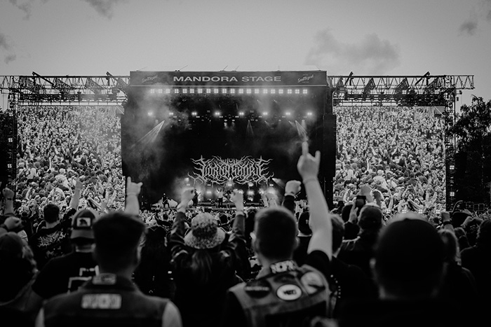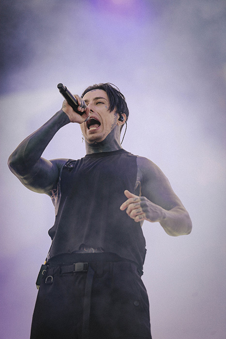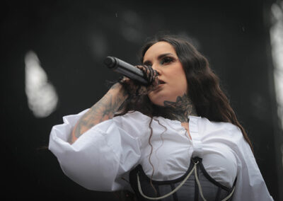 Starten wir zuerst mit der Show von Falling in Reverse. Dafür, dass es um den Frontmann einige Meinungen gibt, war die Utopia Stage bis auf das letzte Eckchen sehr gut ausgelastet! Man kann denken von ihm was man will, Stimmlich und Showtechnisch war das eine mehr als klasse Unterhaltung! Speziell der Opener zu Beginn war live nochmal eine ganz andere Nummer als auf Band. Lorna Shore’s Set konnten wir ebenfalls nicht komplett genießen, da wir uns hier zerteilen mussten. Wir haben sie schon einige Male in kleinen und dunklen Clubs erlebt – umso glücklicher war man, sie mal auf so einer großen Bühne bei Tageslicht sehen zu können. Hammer Show und mega sympathischer Frontmann!