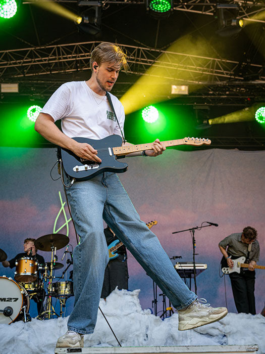 Ohne Pause gingn es zurück zur Nebenbühne, zu Raum27. Die jungen Musiker brachten nicht nur frische Energie, sondern auch eine Bühnenkulisse in Wolkenoptik, die aus dem üblichen Bühnenbilder der Sounds for Nature Stage herausstach. Der Platz vor der Bühne war schon um 18 Uhr mehr als voll. Klarer Hinweis, dass diese Band schon lange kein Geheimtipp mehr ist. Zurück auf der Hauptbühne folgte Enter Shikari, leider ohne Fotomöglichkeit, aber mit einer Performance, die vor Spielfreude und Energie nur so sprühte.