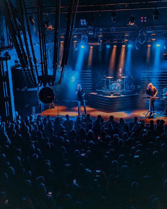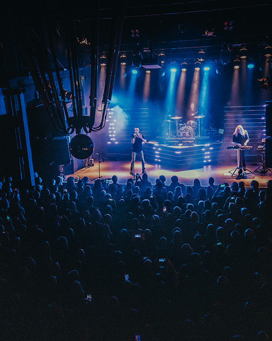 Nach einer kurzen Umbaupause betraten Solar Fake die Bühne – diesmal mit Gastmusiker Elliott Berlin, der den bassspielenden André Feller, der leider diesen Abend aufgrund eines Tinnitus nicht auftreten konnte, vertrat. Mit „Hurts So Bad“ wurde das Set kraftvoll eröffnet, begleitet von einer beeindruckenden Lichtshow, die perfekt zur intensiven Musik passte. Sven Friedrich, wie gewohnt voller Energie, zog das Publikum mit seiner authentischen Art sofort in den Bann. Klassiker wie „More Than This“ und neue Songs wie „Nothing’s Wrong“ sorgten für eine perfekte Mischung aus Nostalgie und frischen Klängen.