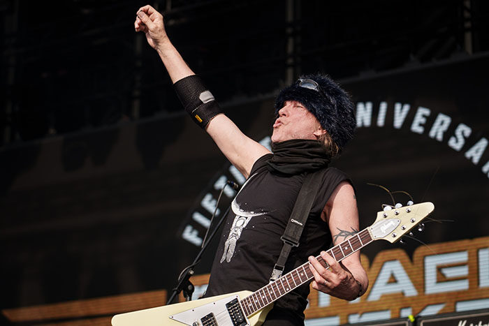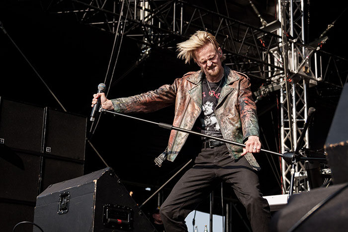 Für mich startete der Festivaltag mit Slade. Die Engländer stehen seit fast 60 Jahren auf der Bühne – allerdings ist Gitarrist Dave Hill inzwischen das einzige verbliebene Gründungsmitglied. Das recht hohe Alter der Bandmitglieder merkte man der Show leider deutlich an. Große Bühnenaction blieb aus, dafür gab’s aber eine erstaunlich dichte Sammlung an Songs aus der Kategorie: Songs, die jeder kennt und niemand weiß, von wem sie sind. Klassiker wie „Far Far Away“ und „My Oh My“ live zu hören war wirklich etwas Besonderes und tröstete dann auch über die sehr statische Show hinweg.