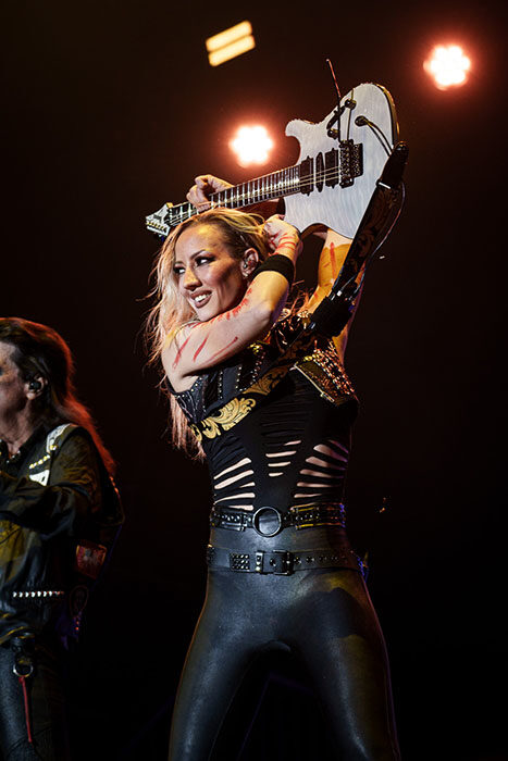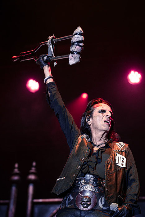 Die Show begann mit dämonenähnlichen Gestalten auf einer als Geisterhaus dekorierten Bühne. Im Zentrum: ein großer Vorhang mit einem Zeitungsartikel über den Skandal um eine frühe Alice-Cooper-Show – ein augenzwinkerndes Spiel mit seiner eigenen Legende. Mit dem Fallen des Vorhangs erschien Cooper, bewaffnet mit einem Säbel, und lieferte eine ebenso musikalisch wie visuell beeindruckende Vorstellung ab. Mit Klassikern wie „Poison“, „No More Mr. Nice Guy“ und neueren Songs wie „Welcome to the Show“ begeisterte er das Publikum.