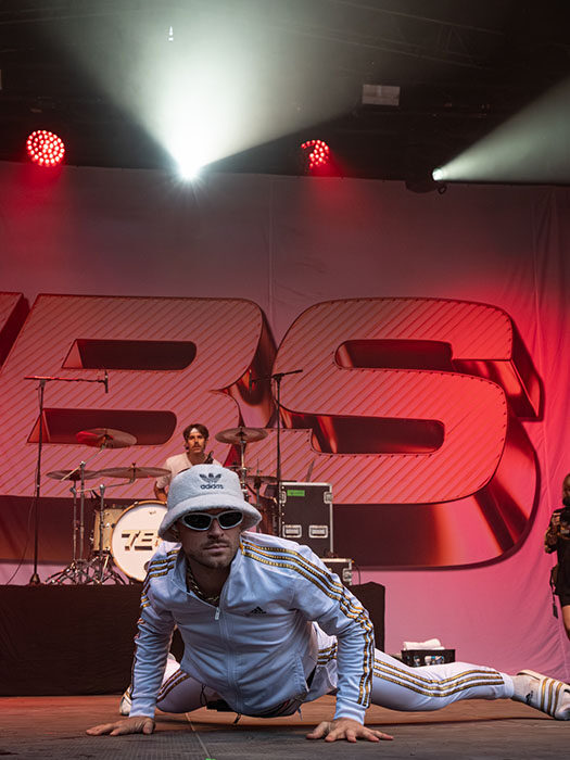 Auf der Hauptbühne folgten Nothing But Thieves aus Großbritannien mit feinstem Rock. Zwar bewegte sich die Band in den ersten drei Songs für Fotograf*innen eher sparsam, musikalisch riss sie jedoch alle mit. Mit The Butcher Sisters neigte sich das Festival auf der Nebenbühne dem Ende zu und wie! Ohne große Ansagen, aber mit voller Kontrolle über die Menge: Vom Scooterfahren über eine Wall of Death bis hin zu einer „Geburt“ auf der Bühne. Dieser Auftritt war ein einziger Fiebertraum oder für uns ein Spektakel. Trotz teilweiser Überschneidung mit Nothing But Thieves war der Platz vor der Bühne brechend voll.