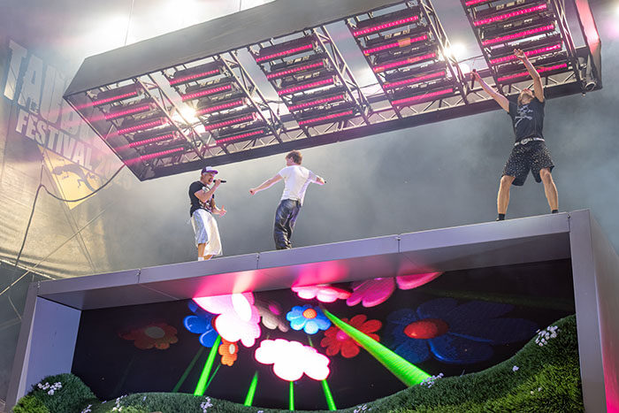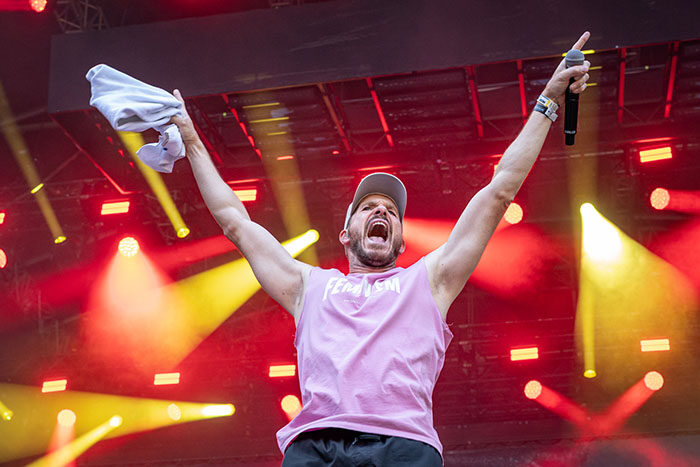 Der zweite Festivaltag startete auf der Taubertal-Stage mit Betontod, die mit knackigem Punk und reichlich Konfetti für ein lautstarkes Hallo sorgten. Direkt im Anschluss folgten Irie Révoltés, die in eine ähnliche Richtung gingen, aber mit ihrer mitreißenden Mischung aus Rap, Reggae und Punk zusätzlich für Überraschungsmomente sorgten. Besonders als einer der Sänger während des dritten Songs in den Fotograben kam und mit den Fans abklatschte.