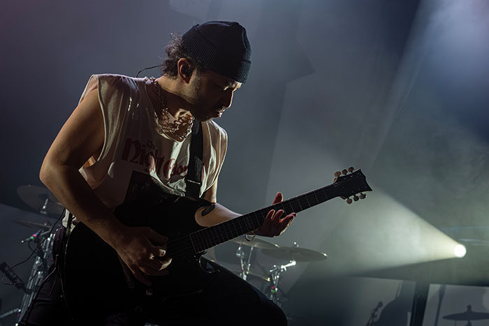 Den Abend eröffnete Callejon. Nach dem üblichen Start und den ersten Songs wurde gemeinsam mit dem Publikum das Alphabet aufgesagt, bevor es richtig losging und dann entstand der erste Circle Pit des Abends. Callejon feuerten inhaltlich klare Botschaften ab: „Despoten, Nazis, Superreiche“ – und sie sprachen sich explizit gegen die AfD aus, unmittelbar gefolgt von „Schrei nach Liebe“, klarer kann man sich nicht positionieren! Die Band brachte außerdem die erste Crowdsurferin des Abends hervor, ein Vorgeschmack darauf, was später noch kommen sollte.