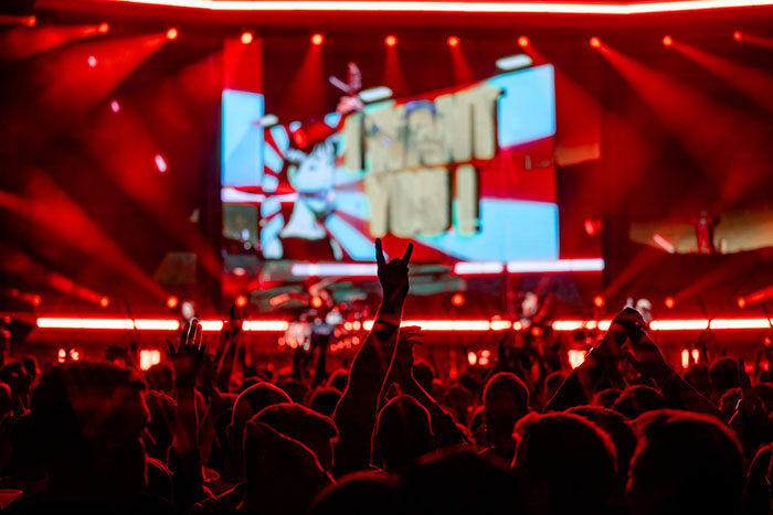 Die Umbaupause? Fühlte sich eher wie eine Bonus-Show an: Kiss-Cam, „Fuck You“-Cam, Publikum im Spotlight und sogar ein Offspring-Luftschiff über den Köpfen. Keine Chance für Handy-Scroll-Müdigkeit. Als dann „Thunderstruck“ ertönte und ein Gorilla die Bühne stürmte, war klar: The Offspring machen das auf ihre Art.