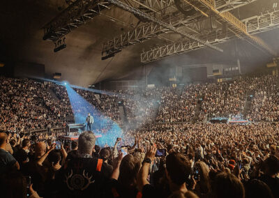 Auch beeindruckend war eine Schlagzeugeinlage auf einer kleinen Platte, die von Fans in den ersten Reihen gehalten wurde. Was mir durch den Kopf ging, war. nicht nur wie schwer die Drums sein müssen, sondern auch mit welcher Leichtigkeit die vielleicht 10 Personen die Platte, Drums und Joshua Dun halten konnten. Was auf einem Konzert dieser Größe natürlich auch nicht fehlen durfte, waren ruhige Töne, die diesmal auf einer B-Stage seitlich im Innenraum aus dem Boden fuhr und umgeben eines Handy-Lichtermeers und einem Scheinwerfer auf Tyler Joseph erstrahlte.